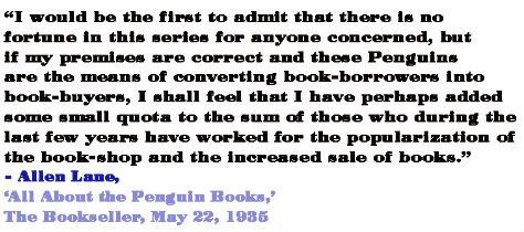 Lane believed that "good quality contemporary fiction should be made available at an attractive price." He didn't think that books should only be sold at book stores, but should also be available at convenience shops, newsstands and railroad stations.