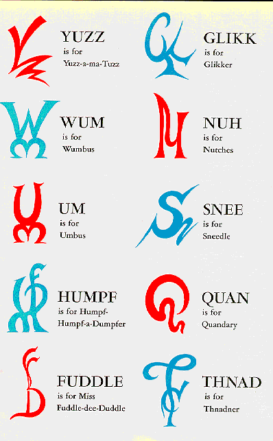 "My alphabet starts with this letter called yuzz. It's the letter I use to spell yuzz-a-ma-tuzz. You'll be sort of surprised what there is to be found once you go beyond 'Z' and start poking around!" - Dr. Seuss